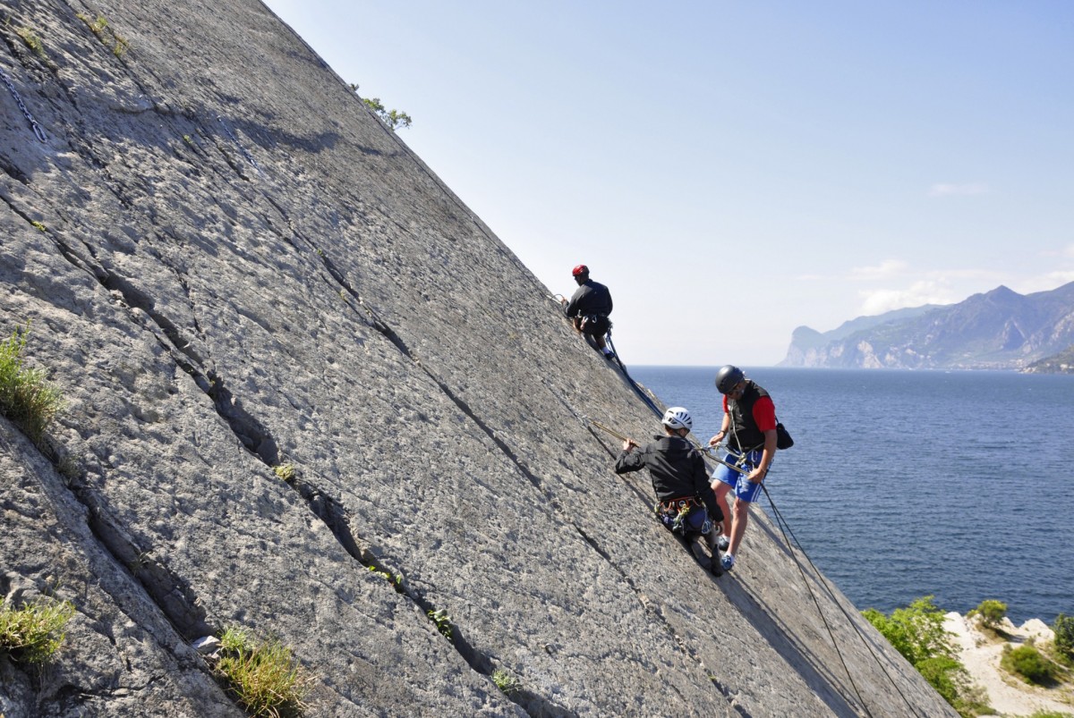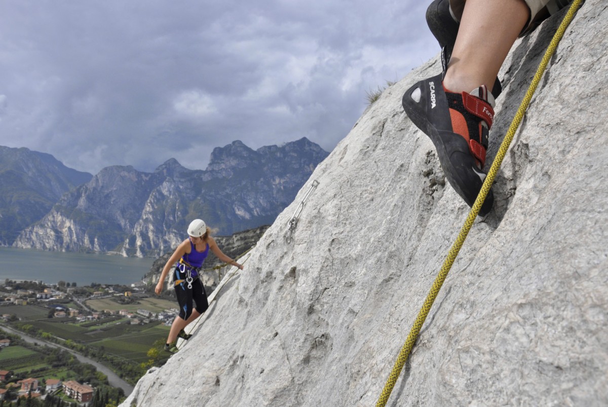 Das mildes Klima und der kompakte Fels im Sarcatal – rund um den Ort Arco am Gardasee – bieten ideale Bedingungen einen Einstieg in das sportliche Felsklettern zu bekommen. In dieser Kletterwoche wird durch eine solide Ausbildung die Sicherungs- und Klettertechnik vermittelt, welche die Voraussetzungen für das selbstständige Klettern im Vorstieg bildet. Knoten, verschiedene Sicherungsarten, Standplatzbau, Topropes einrichten, Abseilen, Ausrüstungskunde, Tourenplanung und Topos verstehen, sind weitere Inhalte der Kletterwoche. Auch Mehrseillängentouren sind in den gut abgesichrten Routen in allen Schwierigkeitsgraden möglich, wobei unser Schwerpunkt in den unteren Schwierigkeitsgraden liegen wird. Wir werden auch die die Möglichkeit einen spektakülären Klettersteig zu begehen. Zeit bleibt auch, durch den pittoresken Ort Arco zu bummeln und einen Cappuccino im Straßencafé zu genießen. Wir wohnen in einer komfortablen Villa hoch über dem Gardasee in Arco-Bolognano und werden von hier aus unsere Tagestouren starten. Nach dem Klettern lädt der Swimmingpool unserer Unterkunft zu einem erfrischenden Bad ein.