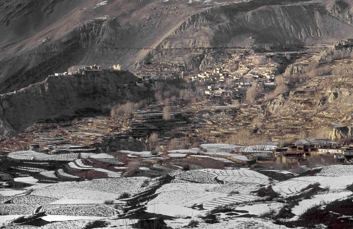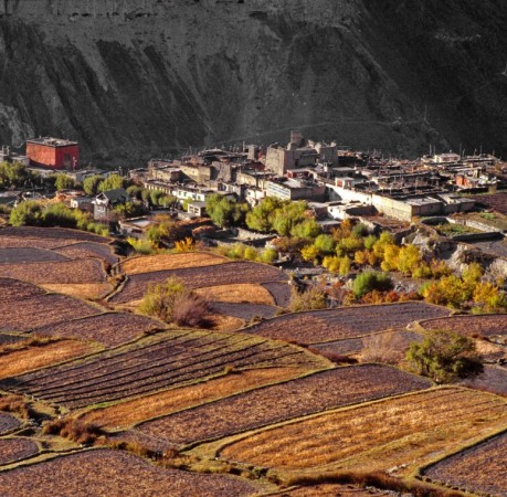 Wir starten das Trekking nicht ohne ein ausgiebiges Frühstück. Wir überqueren den Ghaymi Khola, dann führt die Trekkingroute hinauf auf ein Plateau an langen Manimauern entlang, wo in die unzähligen Steine Mantren (Gebetsformeln) eingemeißelt sind. Die Pässe Gemi La und Tsarang La werden überquert, bevor wir in Charang, ein wichtiges Zentrum für Handel und Kultur in Mustang, eintreffen. Der Ort ist von Weidenbäumen und einem Labyrinth von Feldern umgeben. Hier befindet sich eine Gompa, die Fresken aus dem 16. Jahrhundert aufweist und wertvolle Thangkas (Gebetsrollbilder) besitzt. Die Charang Lekshey Choeling Chunmay Lobta ist eine Schule für junge Nonnen.