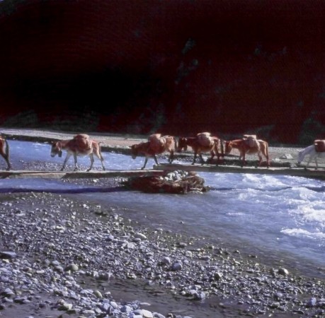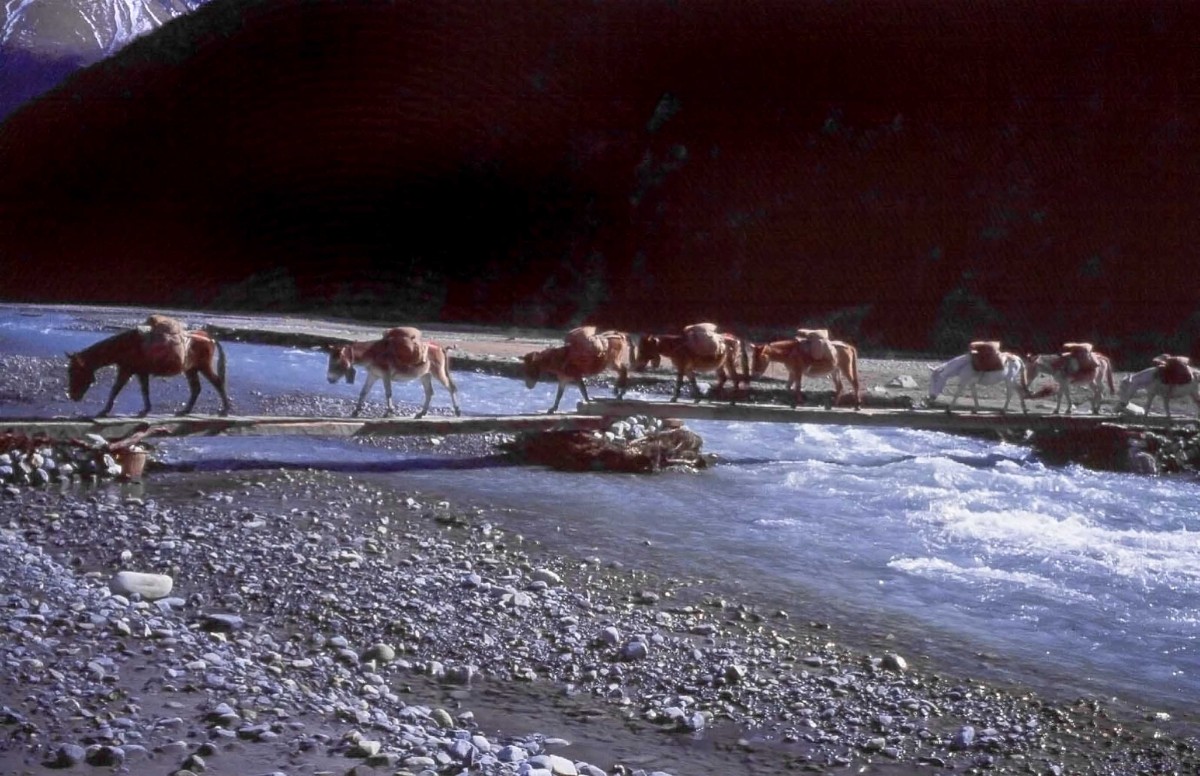 Nachdem wir unser Sonderpermit an dem Checkpost vorgewiesen haben, betreten wir die bis 1992 kaum zugängliche Region Mustang. Der Trekkingpfad führt weiter durch das Flusstal des Kali Gandaki und wechselt zwischen Höhenweg und Trek am Flussufer entlang. Die Route führt im leichten bergauf durch die Dörfer Tangbe (2930m) und Chuksang (2930m). Hier tauchen erstmals eine Reihe der schönen rotgetünchten Chörten des tibetischen Buddhismus auf, die für Mustang typisch sind. Das Dorf Chuksang ist ein sehr schöner Ort mit weiß getünchten Häusern und umliegenden bewirtschafteten Feldern, die trotz wenigen Regens einen fruchtbaren Boden haben. Wir überqueren den Fluss über eine Brücke und erreichen riesige rote Gesteinsbrocken, die von den darüber befindlichen Felsklippen gefallen sind und nun einen Tunnel bilden, durch den der Fluss fließt. Wir verlassen das Tal und es geht steil hinauf zum dem romantisch gelegenen Dorf Chele (3050m). Diese liegt auf einem Felsabvorsprung und bietet einen besonders hervorragenden Blick auf den Nilgiri (7062m) und weitere hohe Gipfel.