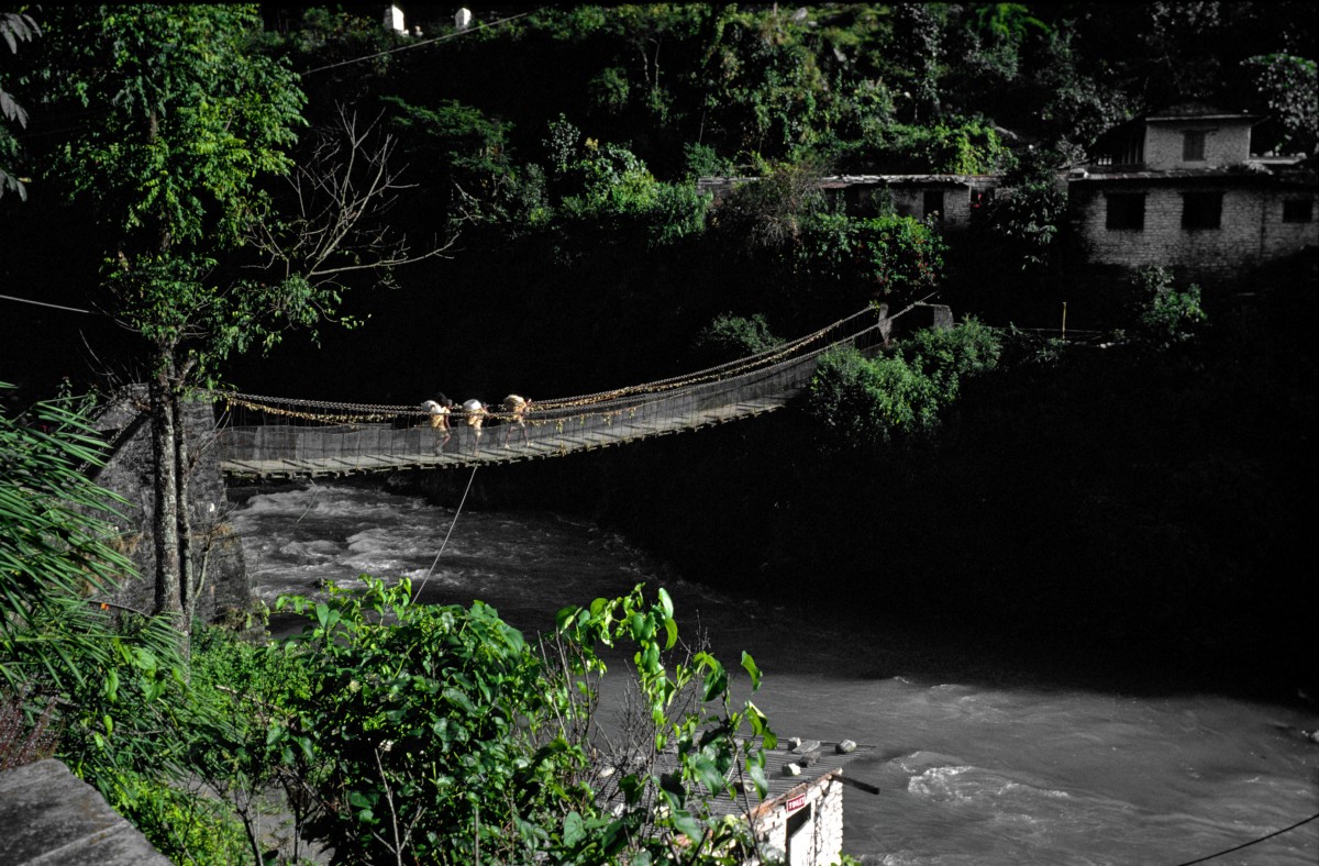 4. Tag: Trekking nach Jagat In den ersten Tagen folgt unsere Trekkingroute der klassischen Annapurna-Runde. Auf unserer Route durch kleine Siedlungen und Terrassenfelder gewinnen wir einen Eindruck vom dörflichen Leben der Gurung-Bevölkerung. Nach einem kürzeren Aufstieg erreichen wir Bahundanda (ca. 1.250 m). Weiter geht es dann abwärts entlang vieler Felder, bis wir wieder zum Marsyandi kommen, wo ein mächtiger Wasserfall in den Fluss stürzt. Beim Dorf Syange überqueren wir den Fluss nochmals und befinden uns dann auf seiner Westseite. Hinter der Ansiedlung verengt sich das Tal zu einer Schlucht. Am Seitenhang steigen wir zur Ortschaft Jagat (1300m) hinauf.