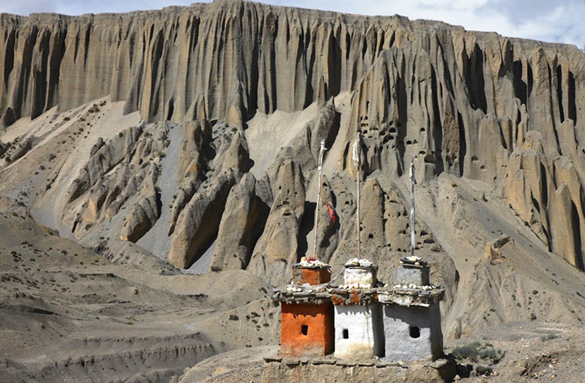 18. Tag: Trekking nach Lo Manthang Auf dem Weg in die Haupstadt von Mustang, überqueren wir den Charang Khola und bald danach erreichen wir den eindrucksvollen Sungda Chörten, wo wir eine Pause einlegen. Unser Trekking-Abenteuer setzt sich fort, indem wir enge Schluchten, hochaufragende Klippen und kiesgefüllte Flussbetten durchwandern. Im Süden sind die beeindruckenden Gipfel des Dhaulagiri und des Nilgiri zu sehen. Wir folgen einem aussichtsreichen Bergrücken und erreichen schließlich die Tore der Stadt. Für zwei Nächte schlagen wir nun unser Lager in Lo-Manthang (3820m) auf.